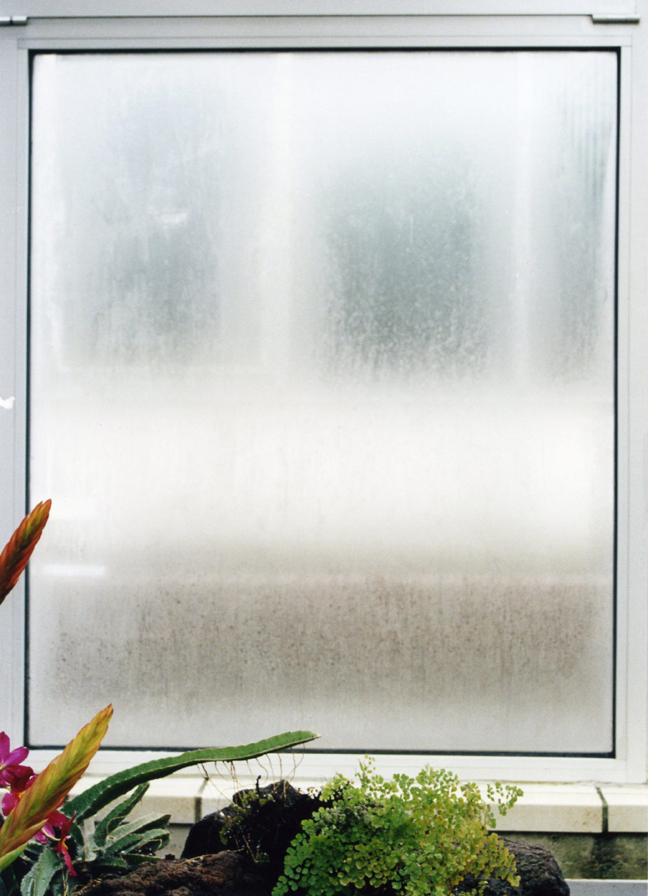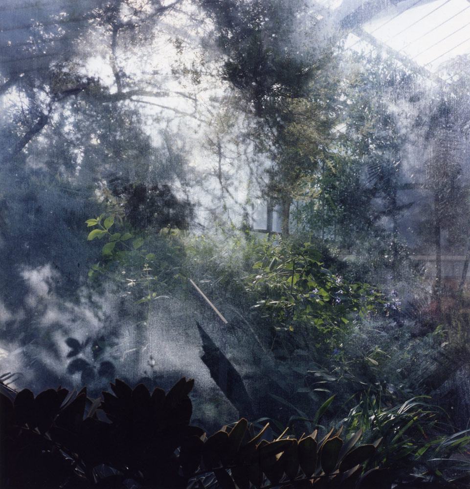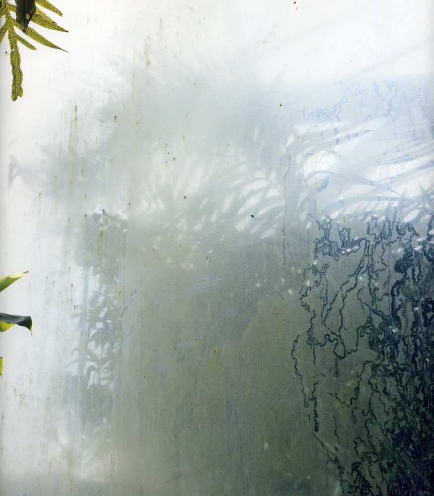 In meinen Fotografien versuche ich das Verhältnis von Innen und Außen in diesen Räumen zu verunklären. Ich nehme eine Art Grenz- oder Zwischenposition ein, indem ich z.B. im Tropenhaus durch beschlagene Scheiben in den dahinter liegenden Raum fotografiere. So entstehen verschiedene Ebenen im Bild, die Räume verschachteln sich oder werden in der Fläche seltsam undeutlich. Entscheidend sind auch die eigentümlichen, so vorgefundenen Lichtsituationen und die Bildkompositionen, die dynamisch, eher der Natur entsprechend sind.