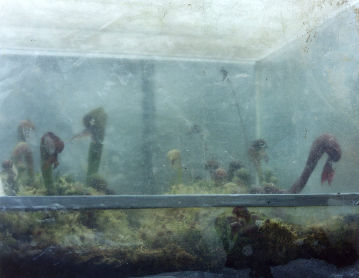 In meinen Fotografien versuche ich das Verhältnis von Innen und Außen in diesen Räumen zu verunklären. Ich nehme eine Art Grenz- oder Zwischenposition ein, indem ich z.B. im Tropenhaus durch beschlagene Scheiben in den dahinter liegenden Raum fotografiere. So entstehen verschiedene Ebenen im Bild, die Räume verschachteln sich oder werden in der Fläche seltsam undeutlich. Entscheidend sind auch die eigentümlichen, so vorgefundenen Lichtsituationen und die Bildkompositionen, die dynamisch, eher der Natur entsprechend sind.