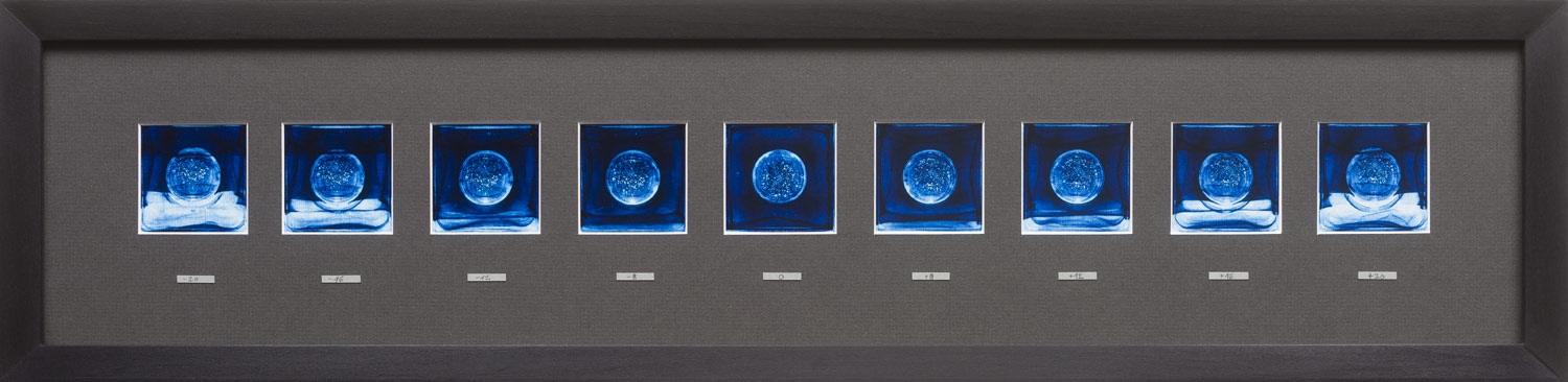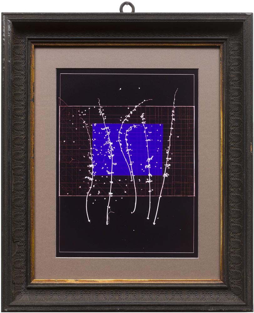 Bei dem analogen Verfahren des Fotogrammes legt die Künstlerin gläserne Gegenstände, Pflanzen, Plastikmüll und ähnliches direkt auf das Fotopapier und belichtet dieses.